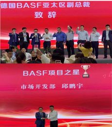 合聚在13年的發(fā)展過程中,始終聚焦高性能材料領(lǐng)域,已經(jīng)從中西部區(qū)域型企業(yè)發(fā)展成為全國(guó)性企業(yè)。在合聚的發(fā)展過程中離不開廣大客戶和供應(yīng)商的支持,適逢橡塑展,合聚于4月14日晚在深圳天安云谷國(guó)際會(huì)議廳成功舉辦了一場(chǎng)“攜手共進(jìn)”客戶答謝晚宴,邀請(qǐng)到了120名合聚重要戰(zhàn)略合作伙伴參與,德國(guó)巴斯夫亞太區(qū)特性材料交通運(yùn)輸事業(yè)部全球副總裁龍志強(qiáng)攜團(tuán)隊(duì)?wèi)?yīng)邀出席晚宴并為晚會(huì)致辭,龍總致辭中說合聚一直是巴斯夫信賴的合作伙伴,并充分肯定了合聚集團(tuán)為巴斯夫產(chǎn)品和應(yīng)用推廣做出的努力和近年來取得的成績(jī)。他希望雙方能夠更加緊密合作、攜手共進(jìn),創(chuàng)造更大的輝煌。隨后,龍志強(qiáng)為合聚集團(tuán)在BASF產(chǎn)品線項(xiàng)目開發(fā)中表現(xiàn)優(yōu)秀的員工邱鵬宇頒發(fā)了“BASF項(xiàng)目之星”榮譽(yù)獎(jiǎng)杯,將整個(gè)晚宴氛圍推上了高潮。